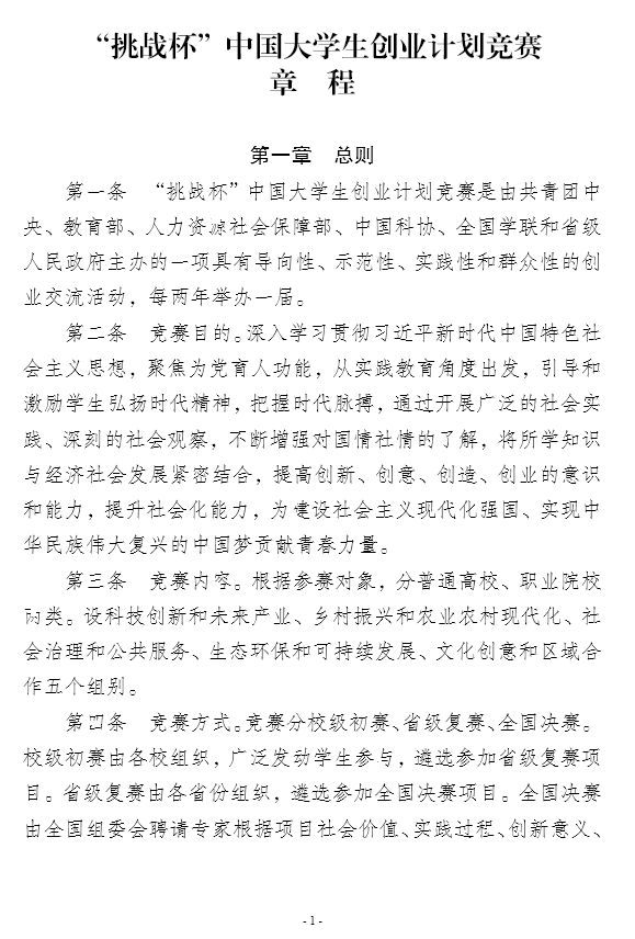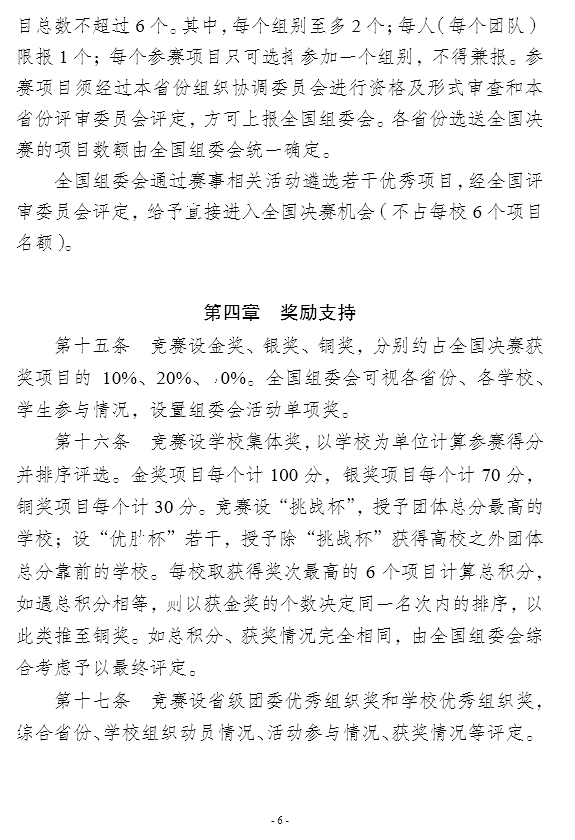 “挑战杯”中国大学生创业计划竞赛章程(参赛资格、赛道组别、奖励支持)